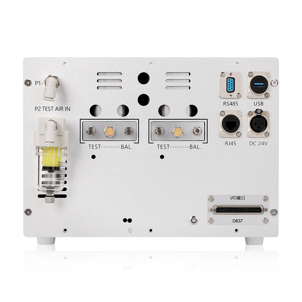 The leak detector adopts a high-sensitivity differential pressure sensor, which has higher test accuracy; adopts a large-diameter air control valve, which has the advantages of fast inflation, good sealing, no heat, and long service life. The air leak tester has an intelligent test function. According to the use characteristics of the differential pressure leak detector, it can effectively eliminate the errors caused by temperature and deformation through the learning and correction function, realize short-time precision measurement, and greatly improve the test efficiency. The system integrates new high-resolution analog-to-digital conversion technology, signal processing, automatic setup, rapid inflation and testing capabilities, an easy-to-operate interface and comprehensive communication technology. The machine adopts an intelligent control interface, which can quickly set the inflation time, pressure holding time, test time, and automatically determine the good product (GO)/non-defective product (NG), which greatly saves the test time;