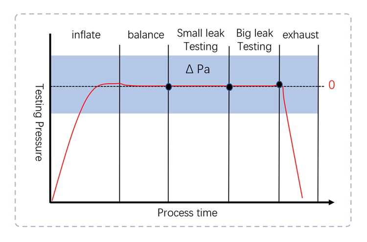 Basic principle: Fill a certain pressure of gas into the test workpiece, close the valve, and after the balance is stabilized, test the pressure decay value for a fixed time. Based on the principle that the larger the measurement range of the industry, the larger the error, we recommend the direct pressure model for leak detection of products with large product volume, low test requirements and long test time.