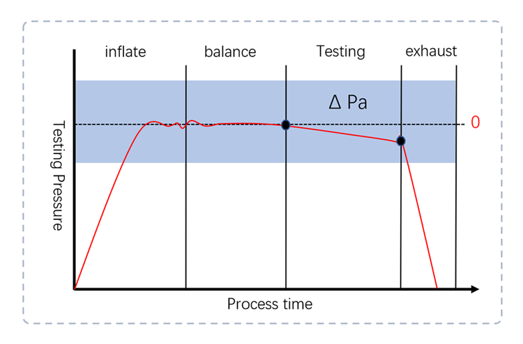 It can be seen from the differential pressure test curve that the use of an air leak meter obtains an effective curve and obtains Δ P, which can accurately determine whether the product is qualified.