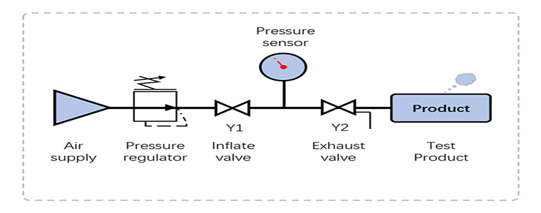 The large-diameter air control valve has the advantages of fast inflation, good sealing, no heat generation, and long service life. The system incorporates updated high-resolution analog-to-digital conversion technology, signal processing, automatic setup, rapid inflation and testing capabilities, an easy-to-operate interface and comprehensive communications technology. The economical and compact enclosure form factor provides an ideal and efficient technical solution for various assembly applications. The machine adopts an intelligent control interface, which can quickly set the inflation time, pressure holding time, and test time, and automatically determine the good product (GO)/non-defective product (NG), which greatly saves the test time;